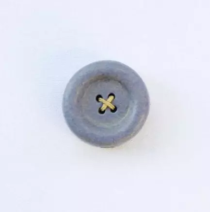 Denne vakre knappeformete magneten i brent leire er fin både som nålepute og som dekorativ magnet på oppslagstavle eller kjøleskap.