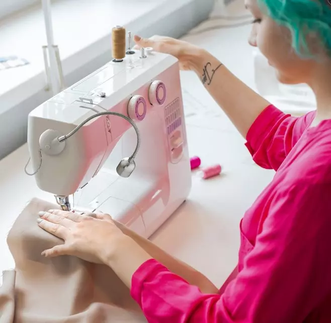 siden av symaskinen med avtagbare limputer som følger med.