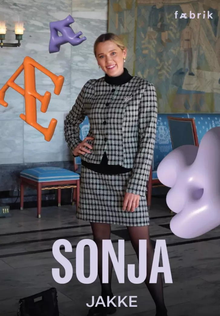 Her kommer Sonja i fysisk mønster med alle størrelsene i én pakke!Dette er en classy, tidløs jakke som får deg til å føle deg som en million, på jobb, på middag, på bussen eller på slottet. Som vår egen dronning, er Sonja ikke bare en jakke, den er en tilstand. Sonja-jakken kommer i to varianter – med og uten krage. Begge er helfôret med skulderputer. Velg stilen du liker best! Denne jakka kommer med noe vi aldri har gjort før på et Fæbrik-mønster, nemlig holdning i ermet. Det betyr at ermet er litt større enn ermeåpningen, og må fordeles i toppen. Dette gjør jakka litt mer avva men også at ermet sitter mye mye penere – men ikke bekymre deg, vi er med deg hele veien i Fæbrik-appen! Stoffvalg utgjør en stor forskjell for resultatet! Vi anbefaler naturmaterialer som ull, lin eller bomull som hovedstoff og glattere stoffer som viskose eller silke til fôr. Når vi bruker glatt fôr vil ikke fôret henge igjen i klærne under eller dra seg og du får en jakke som er behagelig å bruke og holder seg fin i lang tid. Stoff til draktjakka må ikke være for tynne eller bløte, for da vil de ikke klare å holde den litt strenge stive formen over brystet eller ermene. Så velg derfor et stoff som kan stå litt av seg selv. Under finner du litt mer om egenskapene til de ulike stoffene. I tillegg trenger du: Skulderputer/ ull- eller bomullsvatt til å lage egne (Bruk mønsterbitene som følger med for å lage egne). 4 knapper 20, 25 eller 30 mm Vliselin
