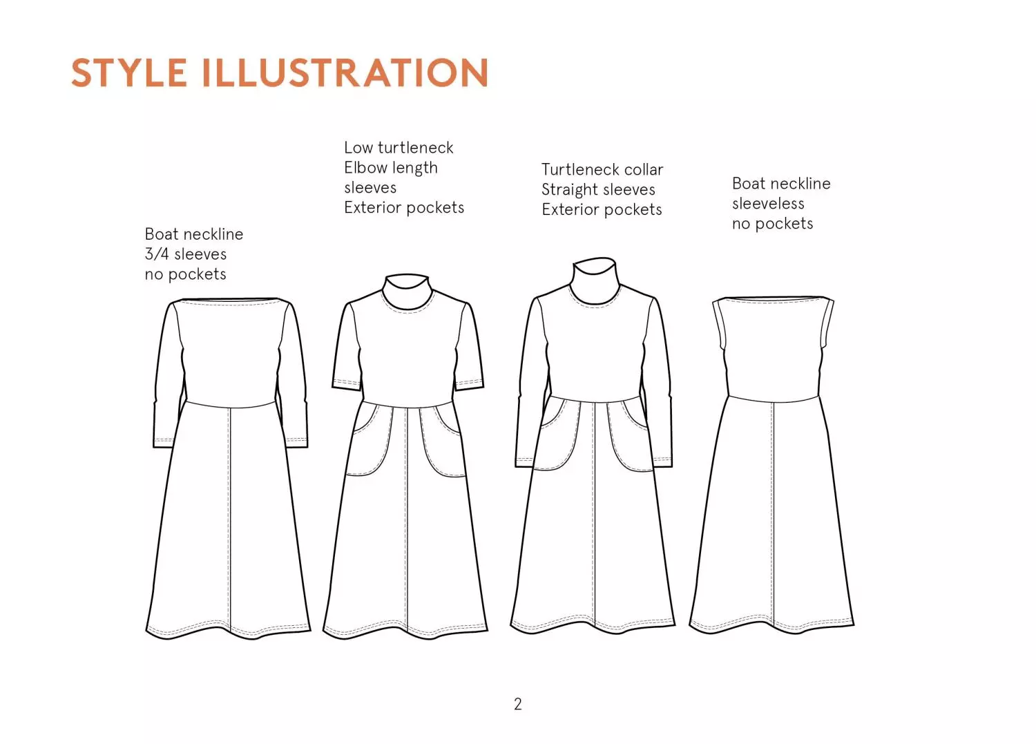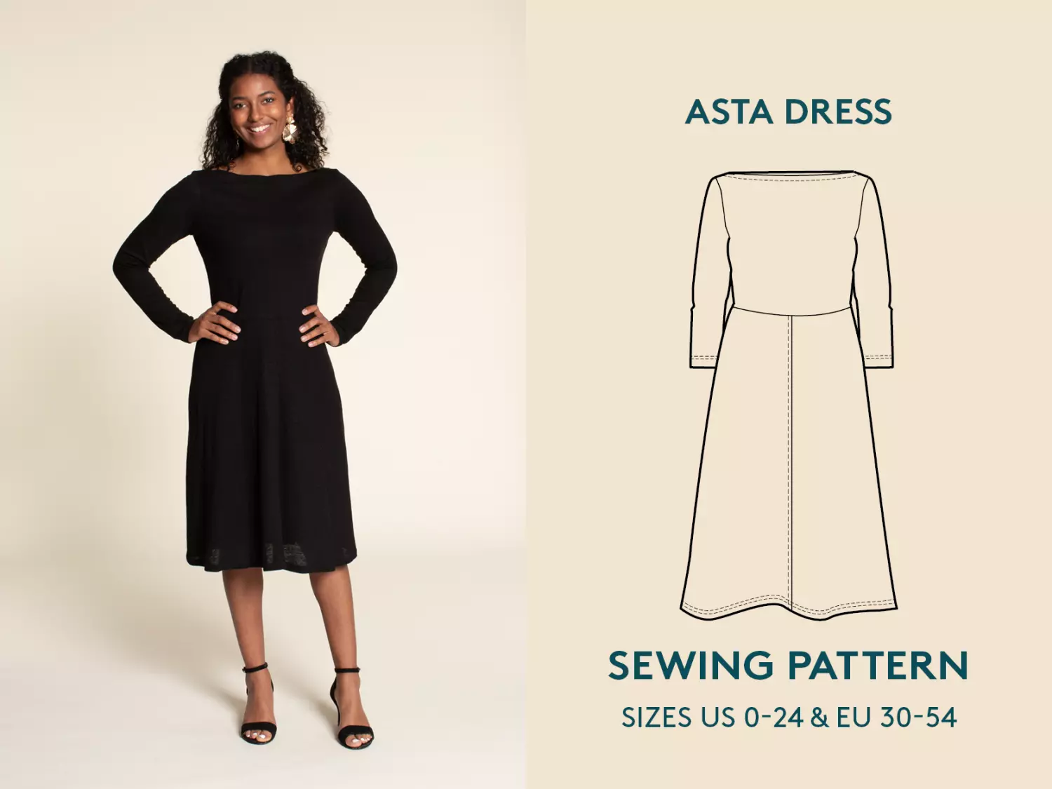 Asta Dress er en allsidig og stilfull kjole perfekt for hverdagsbruk. Mønsteret har en A-fasong og mulighet for forskjellige ermelengder samt høy hals.
