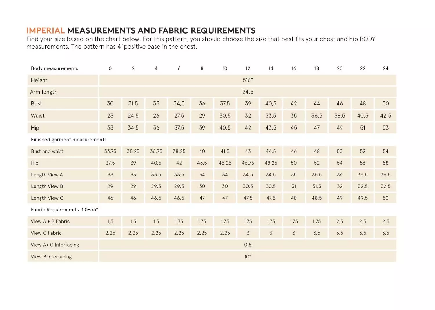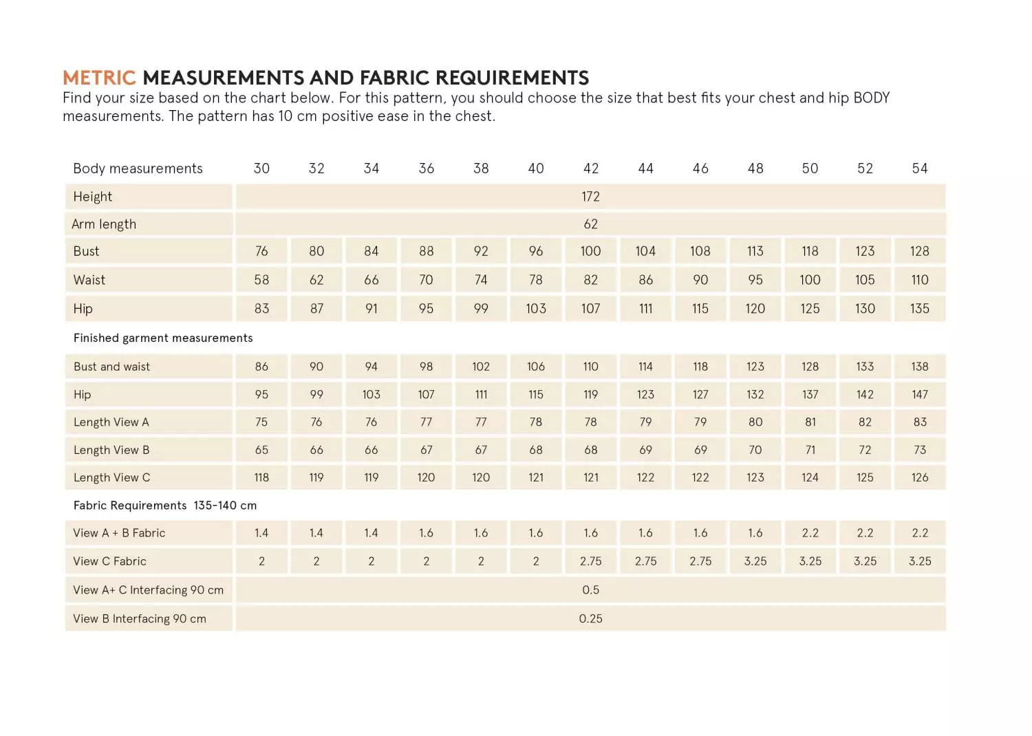 *Bruk lette vevde stoff eller jerseymaterialer. For jersey stoffer, velg en størrelse under din vanlige størrelse for optimale resultater.